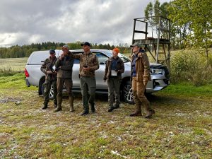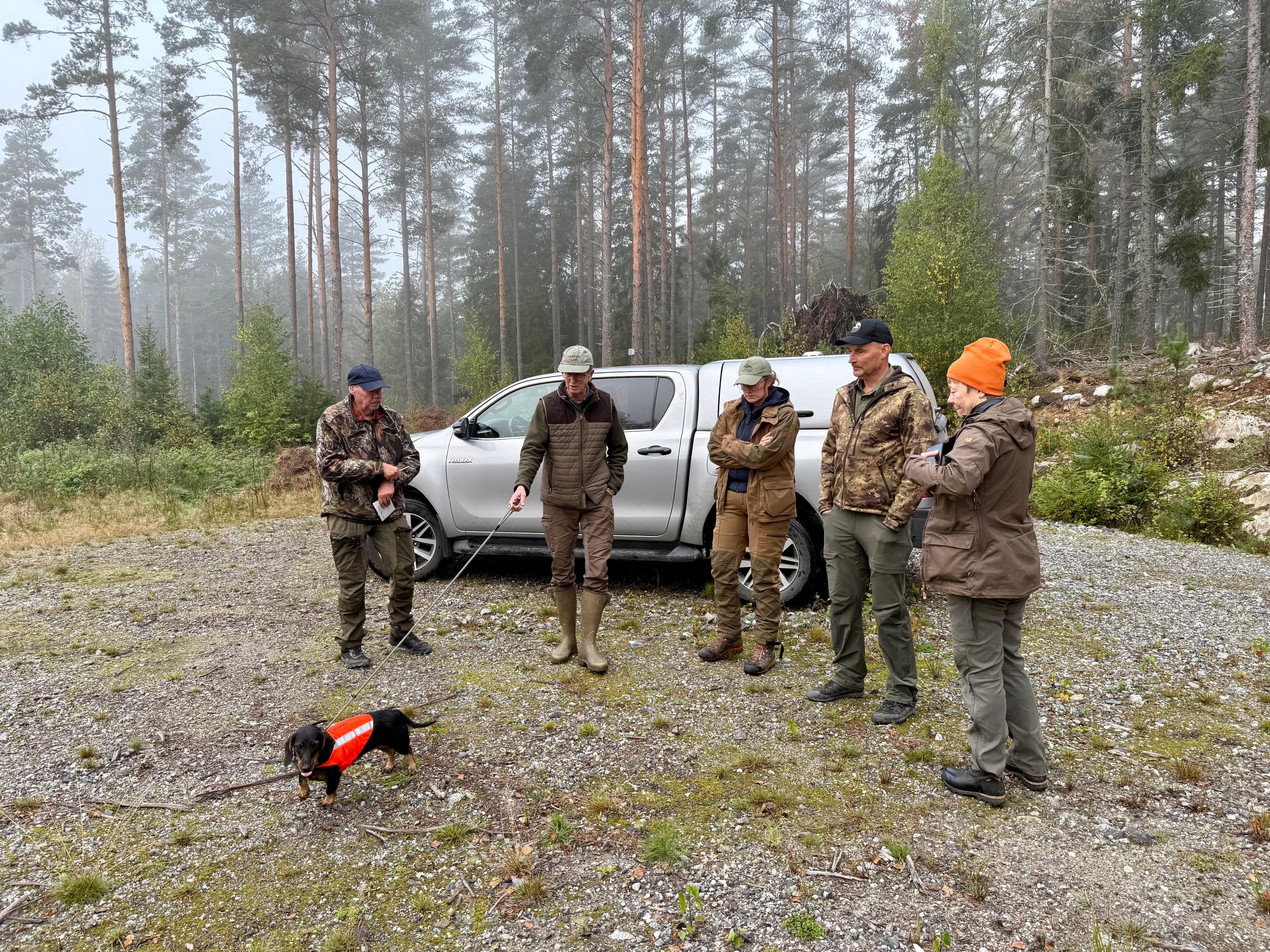 Lunch och gemensam bedömning. Östsvenskas drevdomare Anna Löfgren, Carl Söderberg, Bengt Larsson, kommisarien för rörliga drevprov Anna-Karin Sundqvist och kommisarien för ordinarie drevprov drevdomare Erik Wassén. På bilden saknas Gerhard Lilliestierna som är fullmäktige för domarkollegiet och Micke Sundqvist som är domarelev.