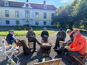 Lunch och gemensam bedömning. Östsvenskas drevdomare Anna Löfgren, Carl Söderberg, Bengt Larsson, kommisarien för rörliga drevprov Anna-Karin Sundqvist och kommisarien för ordinarie drevprov drevdomare Erik Wassén. På bilden saknas Gerhard Lilliestierna som är fullmäktige för domarkollegiet och Micke Sundqvist som är domarelev.